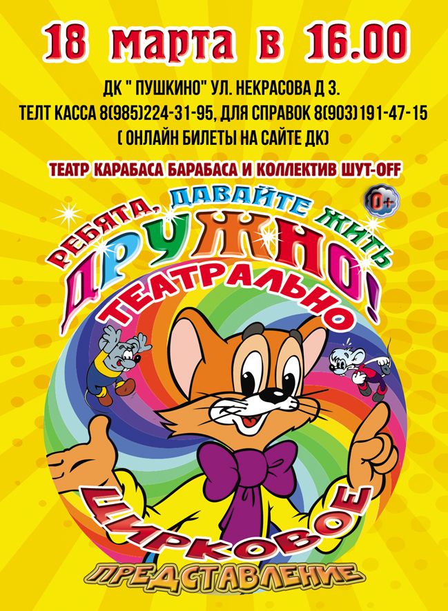 Веселая история вечной вражды кошек и мышей заканчивается всеобщим примирением, и в конце представления зазвучат самые прекрасные и простые слова: «Ребята, давайте жить дружно»!