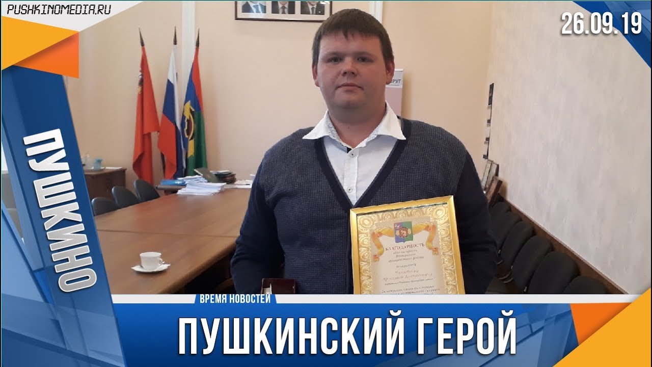 От лица жителей Пушкинского округа и администрации муниципалитета, временно исполняющий полномочия главы Алексей Тимошин, вручил Артемию Челюбееву почётную грамоту за смелость и отвагу, а также небольшой профессиональный подарок – лазерный уровень. Также от Мособлдумы он получил наручные часы.