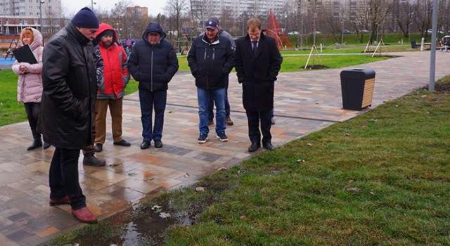 В Пушкино сотрудники районной администрации провели проверку работ по благоустройству набережной реки Серебрянки и сквера «Солнце» на Акуловском шоссе